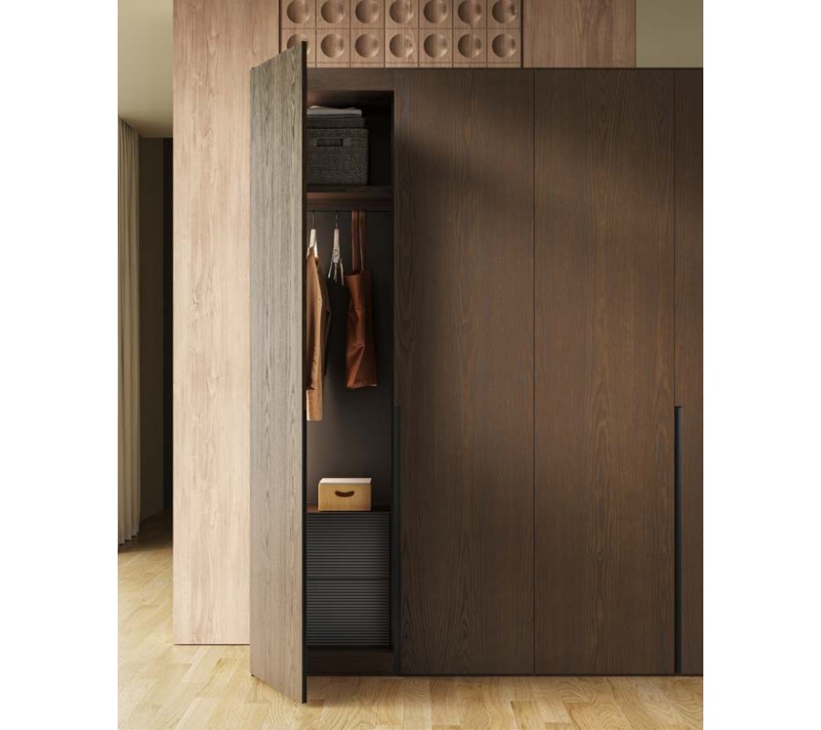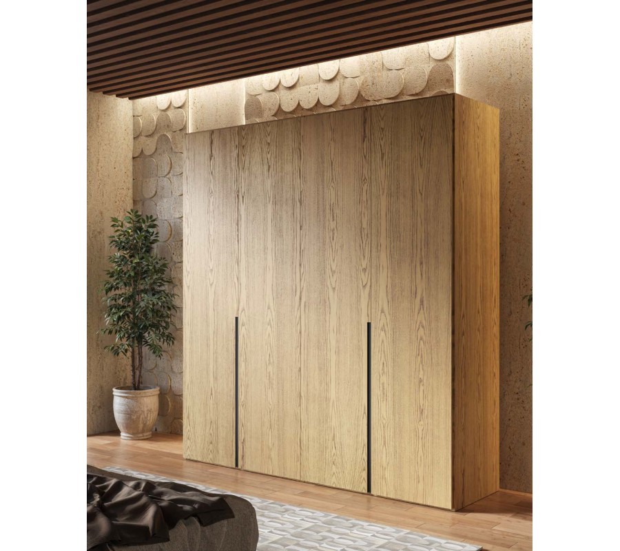 Šatníková skriňa Praga je luxusný, reprezentatívny kus moderného nábytku z masívneho dreva, navrhnutý pre interiéry s dôrazom na exkluzivitu, čistý dizajn a vysokú remeselnú hodnotu. Vyznačuje sa precíznymi líniami a architektonickým spracovaním, ktoré jej dodávajú výrazný, nadčasový charakter. Korpus pôsobí vizuálne kompaktne a monoliticky, pričom dverné plochy siahajú opticky až po podlahu, čo umocňuje dojem celistvosti, stability a luxusu.