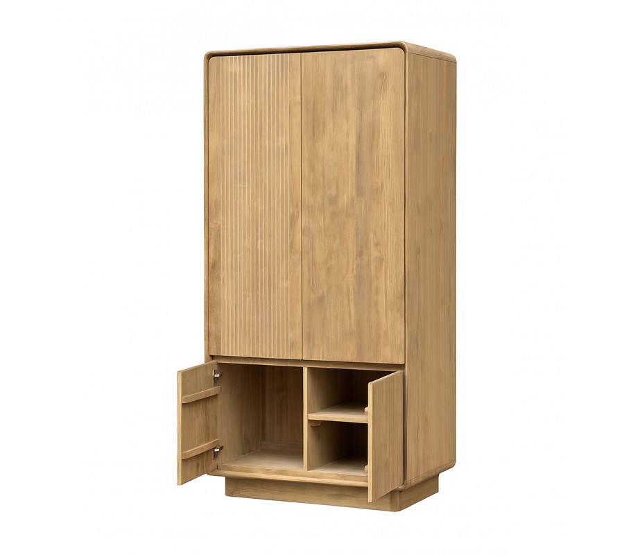 Luxusná retro štvordverová šatníková skriňa Riga s lineárnym reliéfom z masívneho teakového dreva v svetlej hnedej farbe 190 cm
