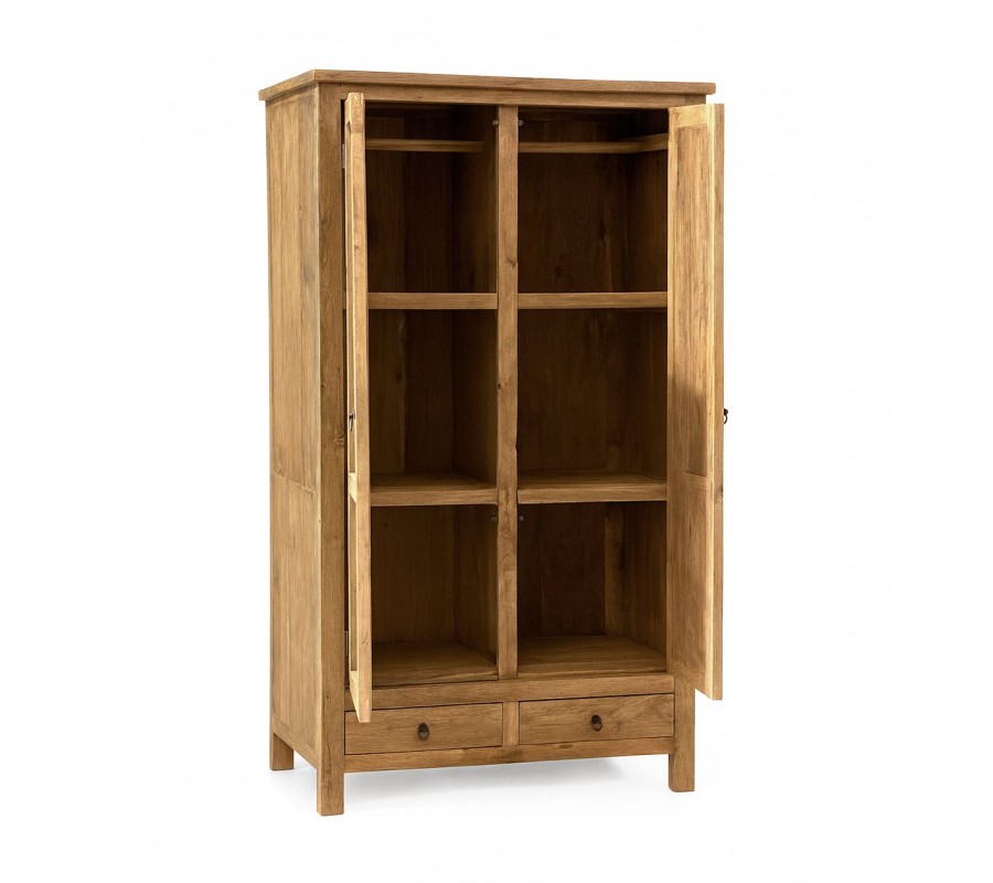 Luxusná vidiecka dvojdverová šatníková skriňa Granaire s dvomi zásuvkami z hnedého teakového dreva s vintage efektom 180 cm