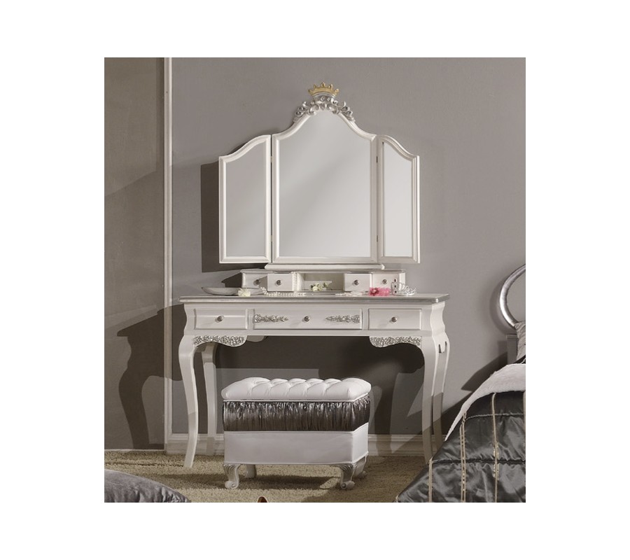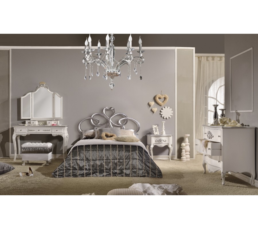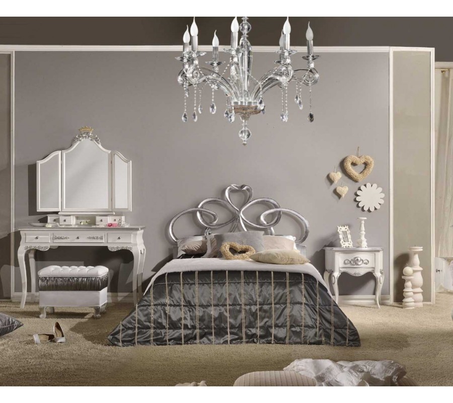 Exkluzívna baroková spálňová zostava Alegro z masívneho dreva s ornamentálnym strieborným zdobením