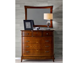 Klasické prevedenie spálne Carpessio vyrobené z kvalitného masívneho dreva je typické vlnitým dekorom a zrkadlovými aplikáciami. Nadčasový dizajn poteší milovníkov klasiky aj masívu. Farebné prevedenie dreva si jednoducho zvolíte podľa vašej preferencie na základe nižšie uvedeného vzorkovníka. Spálňa Carpessio pozostáva z manželskej postele, komody, šatníkovej skrine, závesného zrkadla a nočného stolíka.