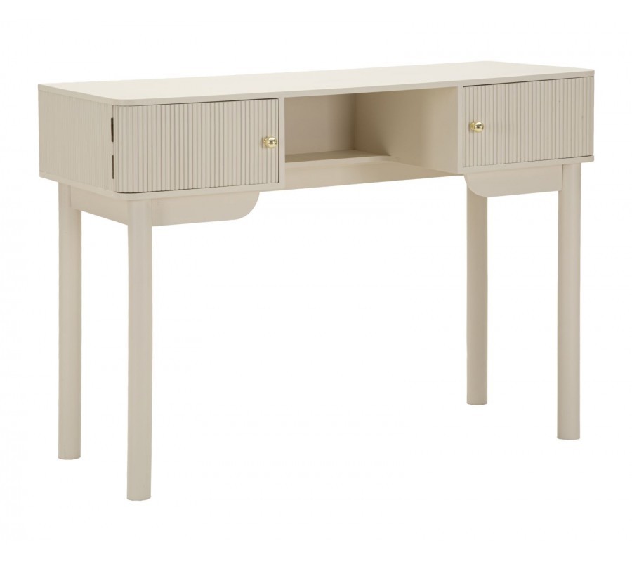 Dizajnová moderná spálňová toaletná zostava Shelly v béžovej farbe so zlatým akcentom a rebrovaným dekorom