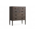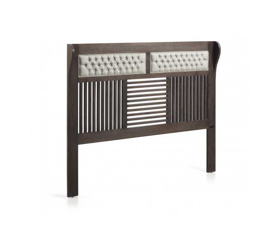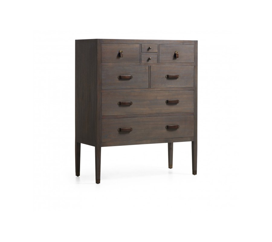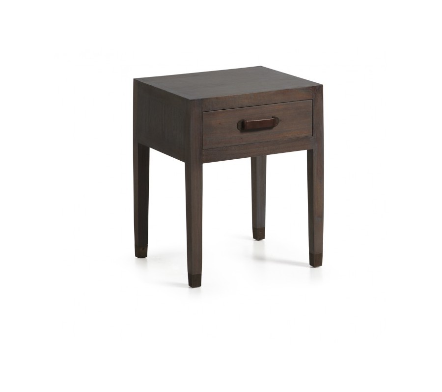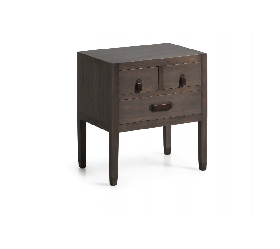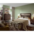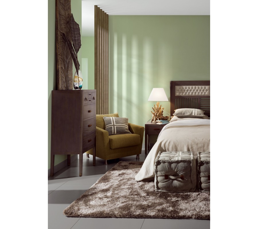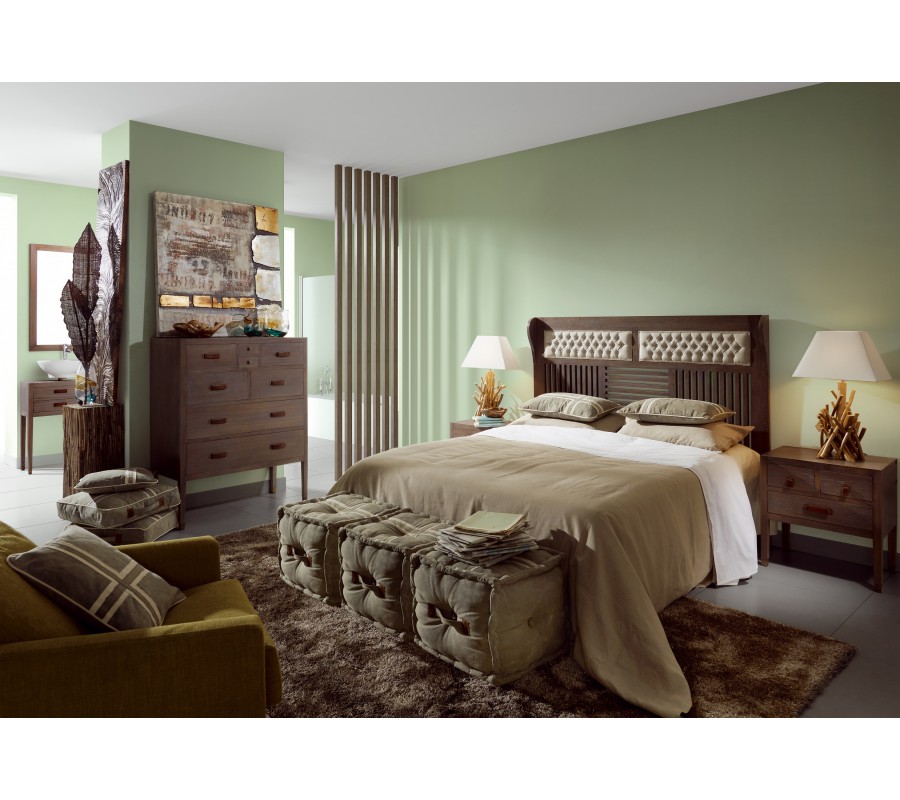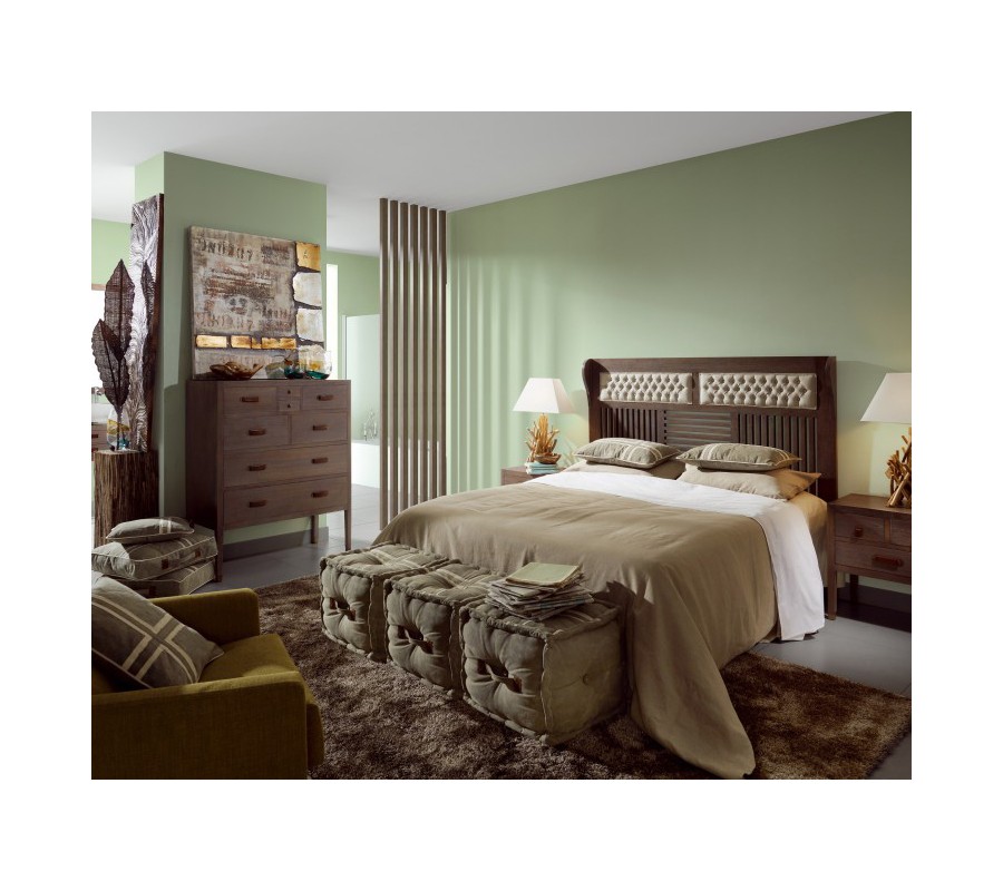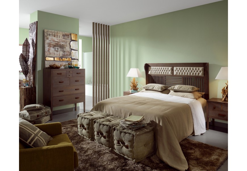 Luxusná spálňa v koloniálnom štýle z kolekcie nábytku SPARTAN je vyrobená z masívneho dreva MINDI, hnedo-modro-čierneho výrazu, podobného drevu WENGE. Štýl kolekcie odrzkadluje sedemdesiate roky. Tento nábytok v koloniálnom štýle má úchyty z tvrdej kože hnedej farby.