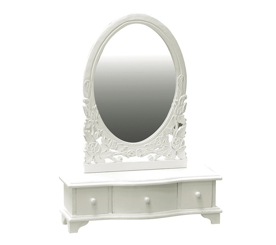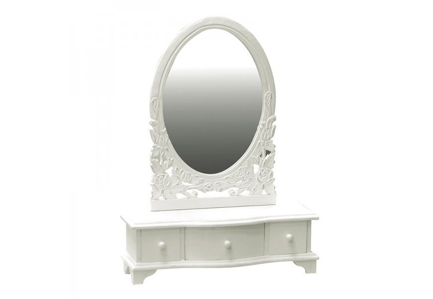 Dizajnové toaletné zrkadlo z kolekcie Belgravia nádherne zapadne do akéhokoľvek romantického interiéru v provensálskom či vidieckom štýle. Príjemne a vkusne vyrezávaný rám zrkadla je doplnený úložným priestorom v podobe zásuviek slúžiacich ako podstavec, ktoré jednoznačne oceníte.
