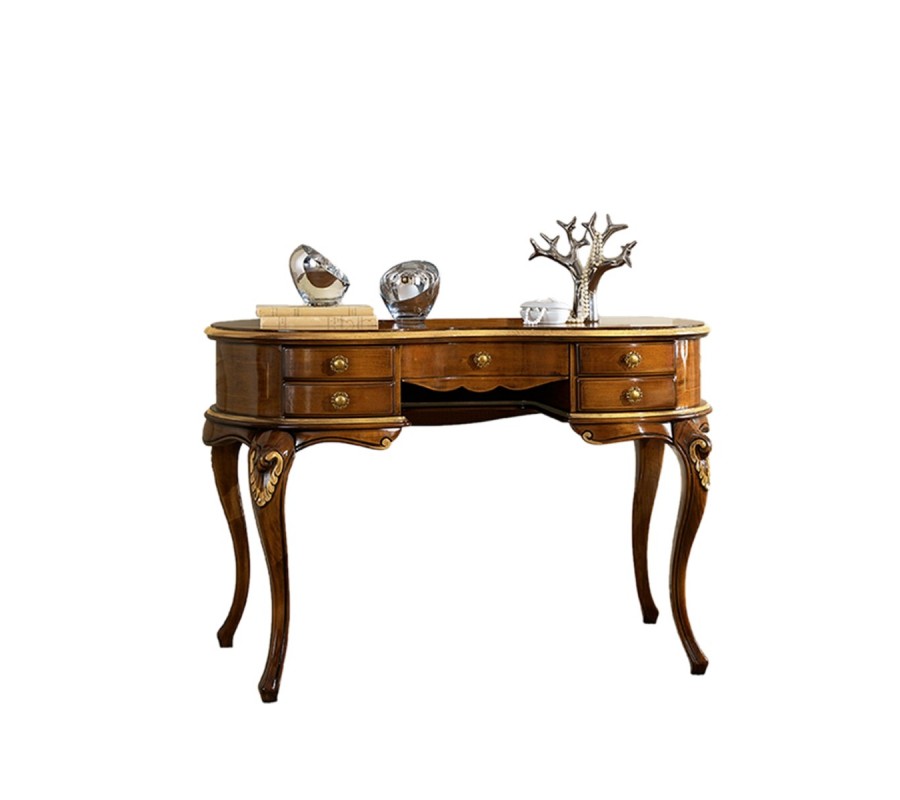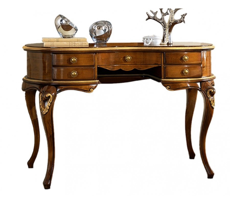 Barokový luxusný toaletný stolík Pasiones z masívneho dreva oválneho tvaru s piatimi zásuvkami 127cm