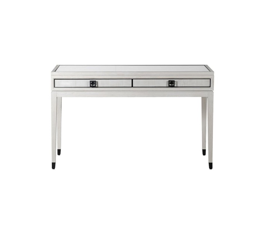 Moderný biely toaletný stolík Quadria Blanca z masívneho dubového dreva s dvomi zásuvkami 130cm