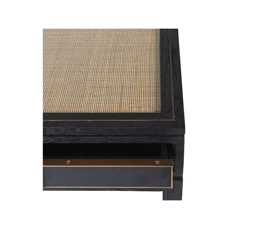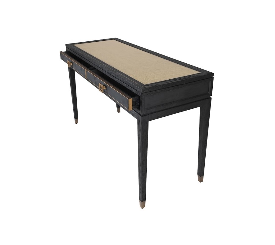 Luxusný art deco toaletný stolík Emperor z masívneho dubového dreva čiernej farby so svetlohnedým ratanovým výpletom 130cm