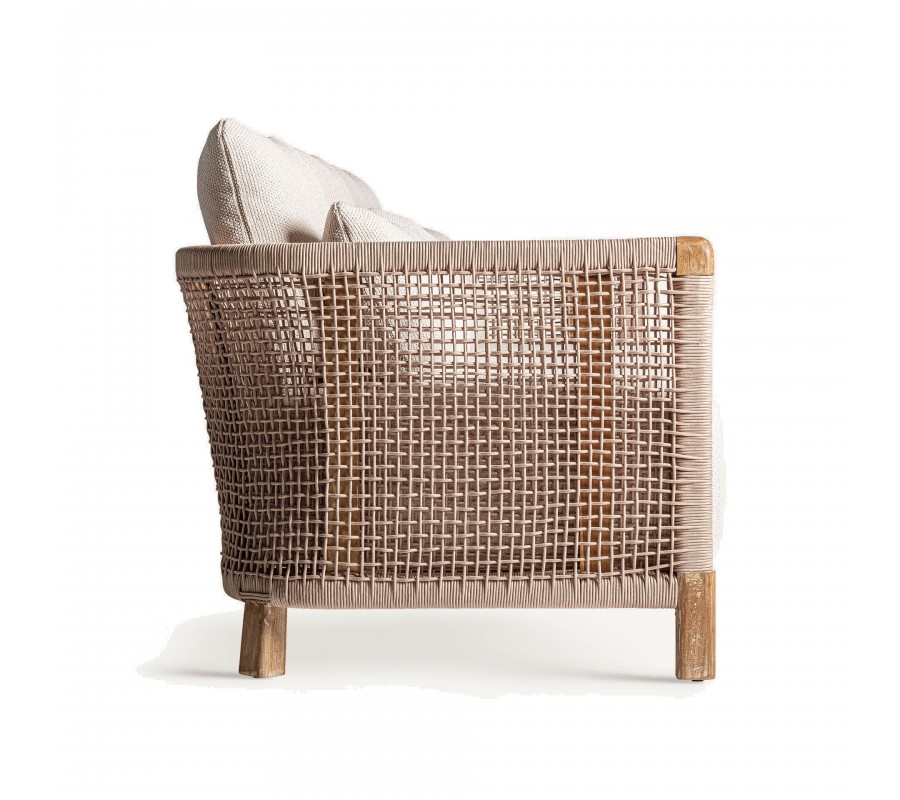 Táto exkluzívna sedačka je ideálna do prírodne ladených interiérov, boho, etno či rustikálnych priestorov, no rovnako sa hodí aj do moderných minimalistických interiérov s dôrazom na prírodné materiály. Skvele sa kombinuje s ratanovým a dreveným nábytkom, prírodnými kobercami, dekoráciami v zemitých odtieňoch alebo jutovými doplnkami. V exteriéri ju možno umiestniť do priestranných terás či záhradných salónikov, kde vytvorí pohodovú atmosféru na relax.