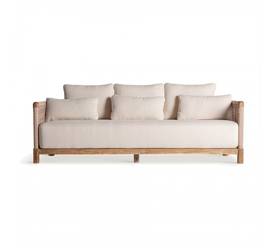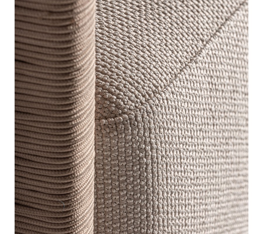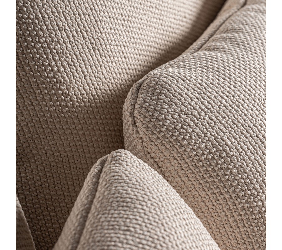 Sedadlo a operadlové vankúše sú čalúnené a potiahnuté jemnou béžovou textíliou, ktorá je príjemná na dotyk a pôsobí elegantne. Tri veľké operadlové vankúše a tri menšie vankúše poskytujú maximálny komfort, pričom nie sú pevne pripevnené k sedačke, takže sa dajú jednoducho premiestňovať alebo vymeniť.