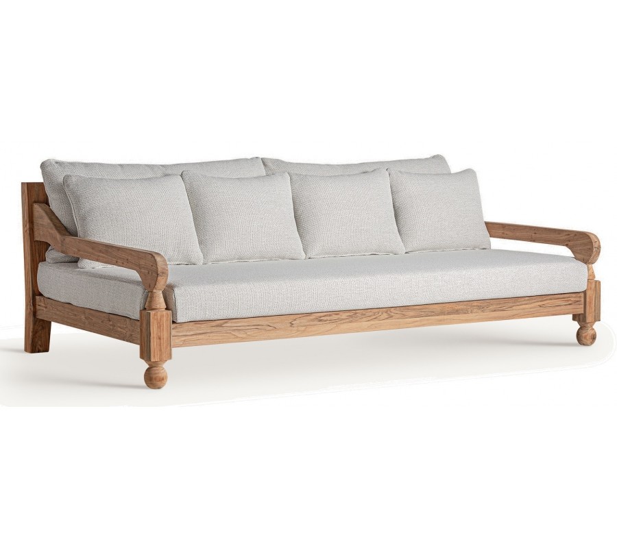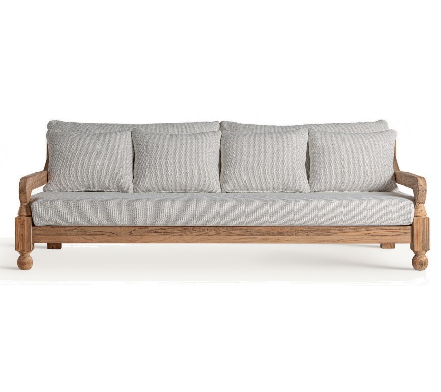 Luxusná koloniálna záhradná sedačka Borinila je elegantným spojením prírodných materiálov a komfortu. Je navrhnutá pre štyri osoby a vybavená šiestimi čalúnenými vankúšmi v sivej farbe, ktoré sú vyrobené z recyklovaného polypropylénu. Vankúše nie sú pevne pripevnené, takže sa dajú ľahko odstrániť alebo upraviť podľa potreby.
