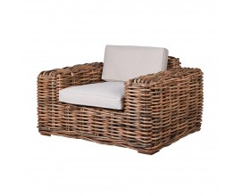 Ratanové kreslo Toreno hnedej farby so zaobleným operadlom a bielym podsedákom 81cm