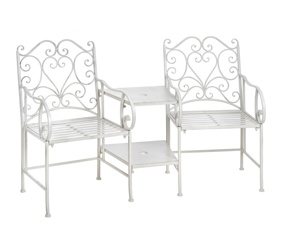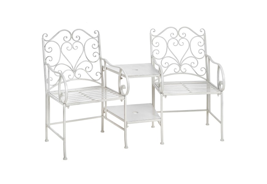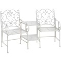 Tento set dvoch kovových záhradných kresiel v bielej farbe vám zaručí príjemné posedenie na záhrade či terase s niekým blízkym. Veľmi praktickým prvkom tejto zostavy je stolík, ktorý obe kreslá spája a nezaberá tak moc priestoru.