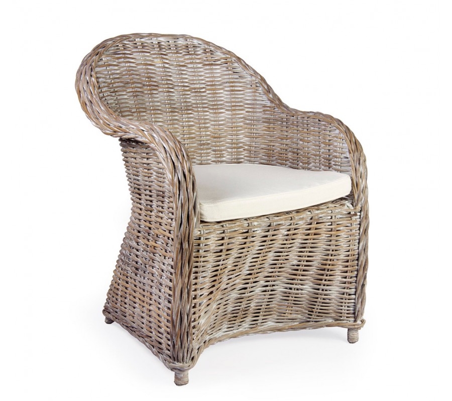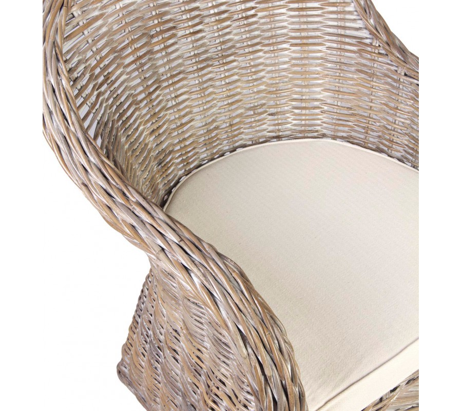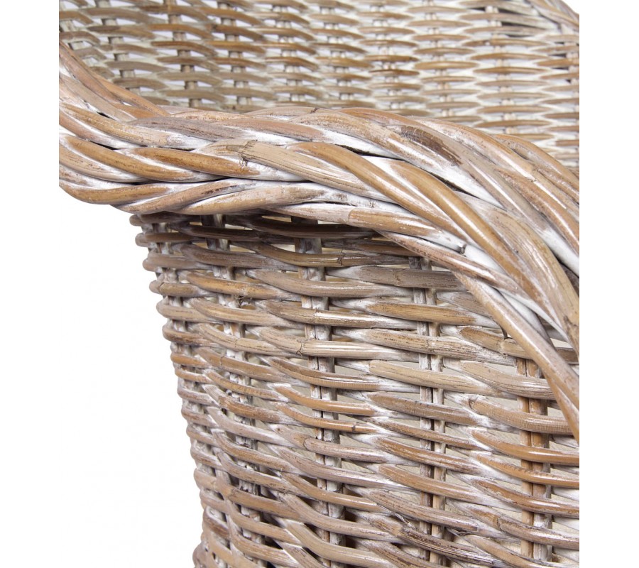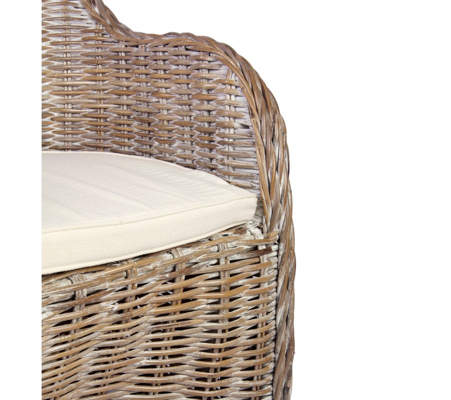 Multifunkčný kúsok v podobe ratanového kresla sa vynikajúco hodí na kryté terasy a do uzavretých zimných záhrad ladených do vidieckeho či jemne koloniálneho štýlu. Kreslo disponuje opierkami na ruky vyúsťujúcimi z ratanovej konštrukcie. Konštrukcia kresla Ruta je tvarovaná do neobyčajne štýlovej oblej siluety siahajúcej od operadla až po nožičky kresla. Svojou výškou sa bude hodiť aj do vašej jedálne k masívnejšeimu jedálenskému stolíku, kde ju pohodlne zasuniete a ušetríte tak priestor. Vyhotovenie z ratanu s bielou patinou, ktorá pôsobí ošúchaným dojmom ponúka viacero možností pri zariaďovaní vášho interiéru. Vďaka farebnému prevedeniu dokonale splynie s kúskami vo vidieckom štýle, nestratí sa však ani v koloniálne ladených obývačkách, uvítacích halách či predsieňach. Okrem univerzálnosti prináša kreslo Ruta aj pohodlie pri sedení vďaka hrubšiemu podsedáku v slonovinovej farbe. Poťah podsedáku je odnímateľný, a preto je údržba veľmi jednoduchá.