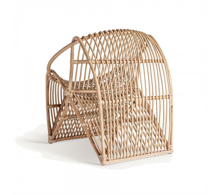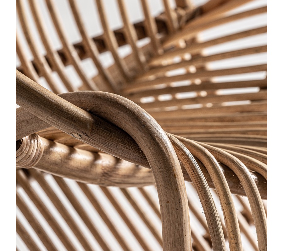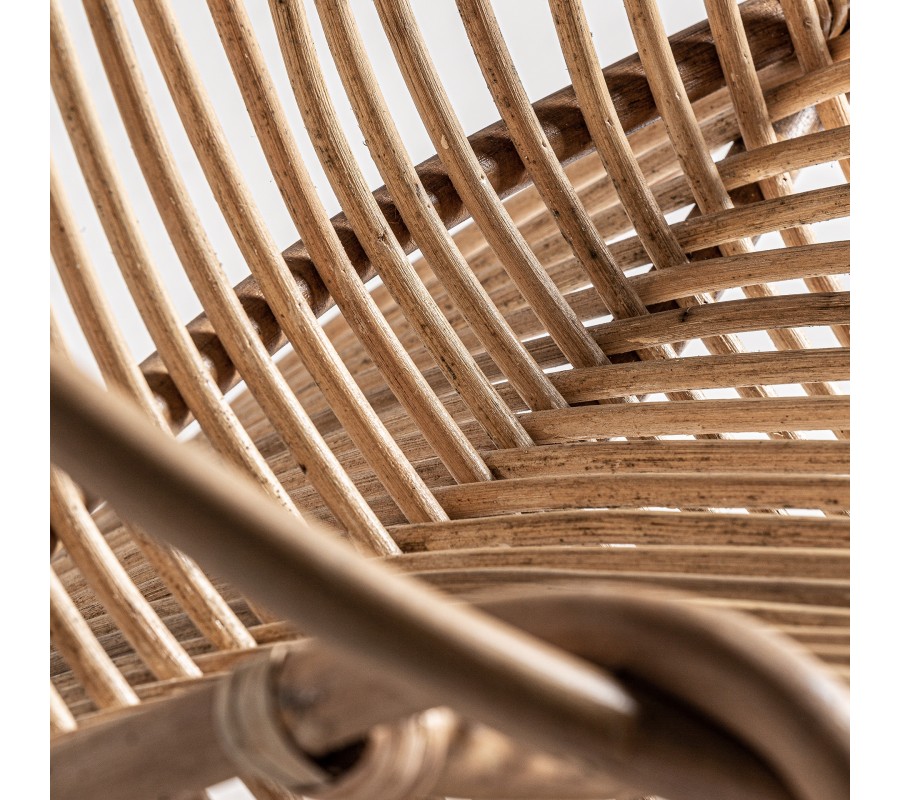 Záhradné kreslo Ellazo dodá vašej terase či balkónu štýlový moderný dizajnový prvok. Je ručne vyrobené z ratanového dreva, ktoré je obľúbené vďaka svojej odolnosti a flexibilite, čo z neho robí ideálny materiál na výrobu vonkajšieho nábytku. Hrubší rám kresla je tvorený z ohýbaných drevených častí a na ňom sa nachádza lineárny výplety z tenších vlákien. V siluete dominujú rovné línie, jednoduché zakrivenia a centrálny kruhový prvok ohraničujúci sedaciu časť kresla. Kombinácia materiálu v naturálnych farbách, jednoduché línie a ich zakrivenie vytvára harmonický zenový vzhľad a ilúziu pokojnej plynulosti. Kreslo môžete doplniť na terasu k jednoduchej ratanovej sedačke, kde bude výrazným akcentovým prvkom. Vďaka jedinečnému dizajnu sa hodí aj na individuálne umiestnenie, napríklad na balkón alebo do časti záhrady, kde chcete vytvoriť štýlový oddychový kútik. Je tiež skvelou voľbou do zimných záhrad. V kombinácii so živými zelenými rastlinami vynikne prírodný charakter nábytku a vo vašom domove tak vytvoríte skutočnú oázu pokoja.
