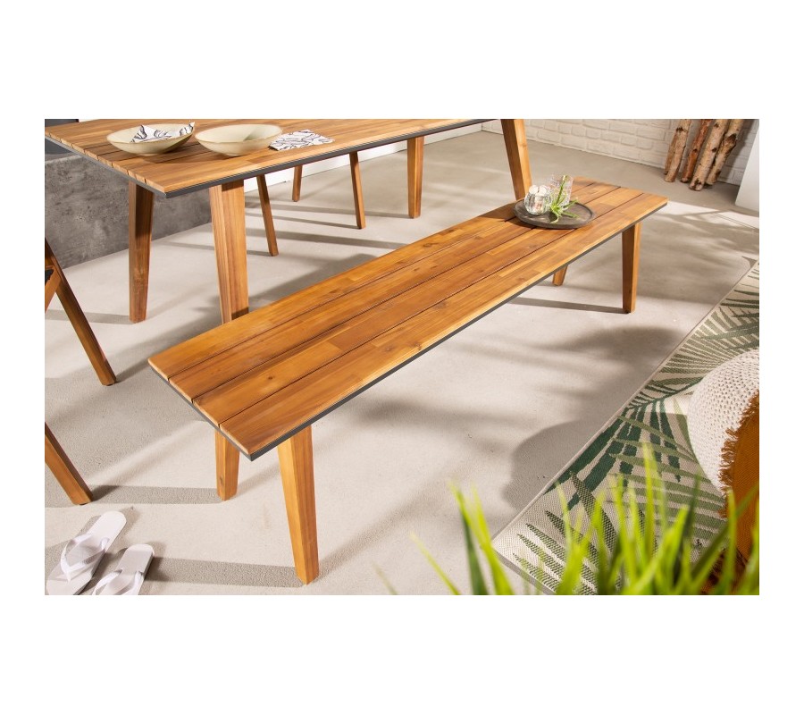 Masívna záhradná lavica Penida z akáciového dreva hnedej farby v industriálnom štýle 180cm