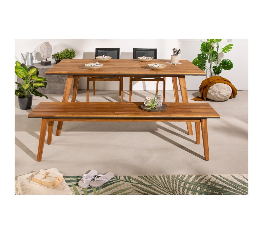 Masívna záhradná lavica Penida je štýlovým moderným kúskom vhodným na letné posedenia na terase či záhrade. Telo z akáciového dreva hnedej farby tvorí príjemný naturálny nádych a vynikne v svetlejšom aj tmavšie ladenom prostredí. Ochranný lak a povrchová úprava činí lavicu odolnú voči poveternostným podmienkam a vplyvom počasia. Odporúčame lavicu Penida kombinovať smasívnym záhradným stolom a stoličkami a doplniť živými rastlinami či dekoráciami vo vidieckom alebo industriálnom štýle.