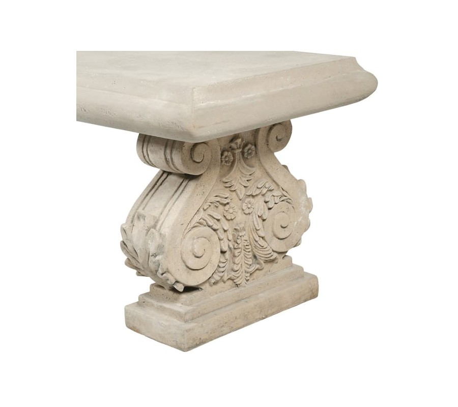 Štýlová lavica z našej kolekcie vintage nábytku Antic Rome je skvelým doplnkom na každú záhradku či dvor. Ako vyplýva už z názvu, dizajn tohto kúsku je inšpirovaný antickým umením a kultúrou a nesie v sebe znaky typické pre toto obdobie. Lavica z materiálu polyresin je doplnená o mramorovú povrchovú úpravu v pieskovej hnedosivej farbe. Jednoduchú obdĺžnikovú sedaciu časť dopĺňa ornamentálna podstava s detailnými organickými a prírodnými vzormi. Toto nádherné zdobenie vaše záhradné priestory premení na antickú oázu. Odporúčame ju doplniť živými kvetmi či kermi, rovnako ako aj kombinovať s ďalším nábytkom z kolekcie Antic Rome.
