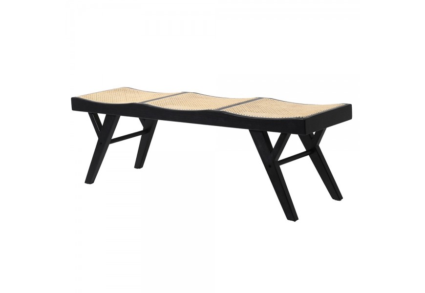 Ratanová lavica v minimalistickom čínskom štýle s tromi sedadlami Eyson 45 cm