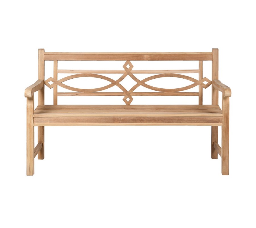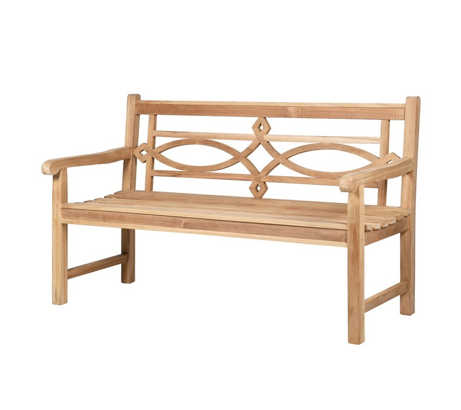 Vidiecka ozdobná záhradná lavica Meks z teakového dreva v svetlo hnedej farbe 150 cm