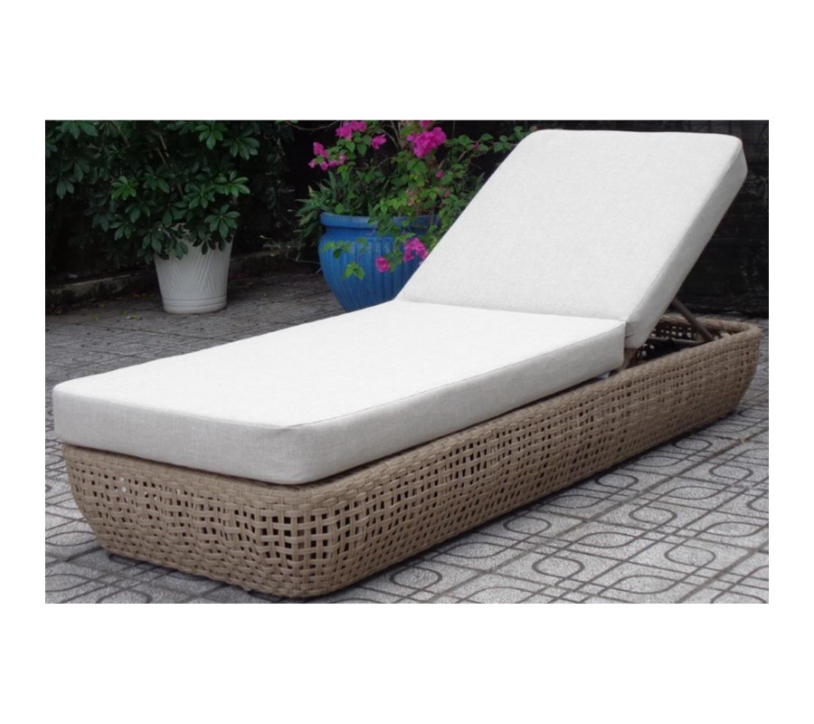 Luxusné moderné ratanové záhradné lehátko Riviera s nastaviteľným operadlom a béžovým vankúšom 205 cm