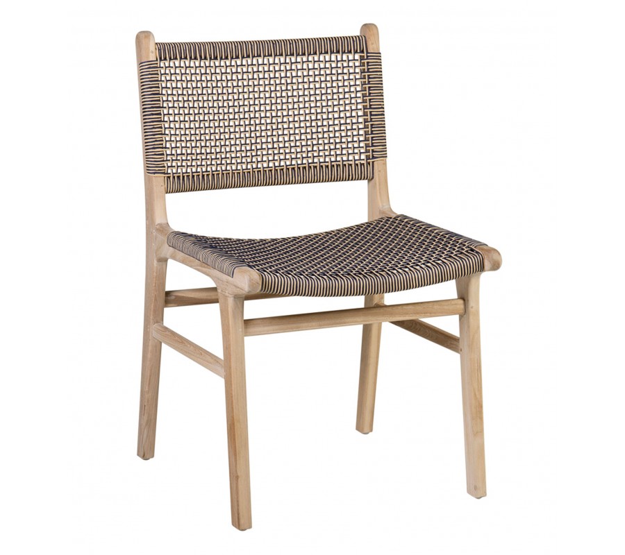 Moderná záhradná stolička Trapani so svetlým hnedým dreveným rámom s béžovo-modrým výpletom 88 cm