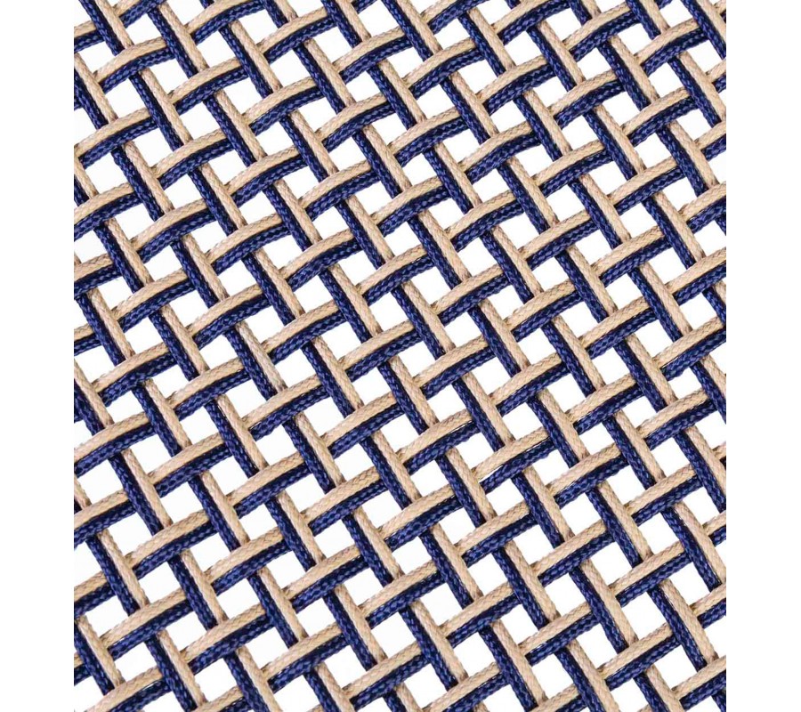 Chrbtová opierka a sedacia časť majú obdĺžnikový tvar. Sú vyplnené výpletom so štvorcovým vzorom. Každé vlákno výpletu tvoria dva vedľa seba umiestnené povrazy, jeden v béžovej farbe, podobnej rámu a druhý v kontrastnej kráľovskej modrej farbe, aká sa často používa aj pri zdobení keramiky z oblasti stredozemného mora.