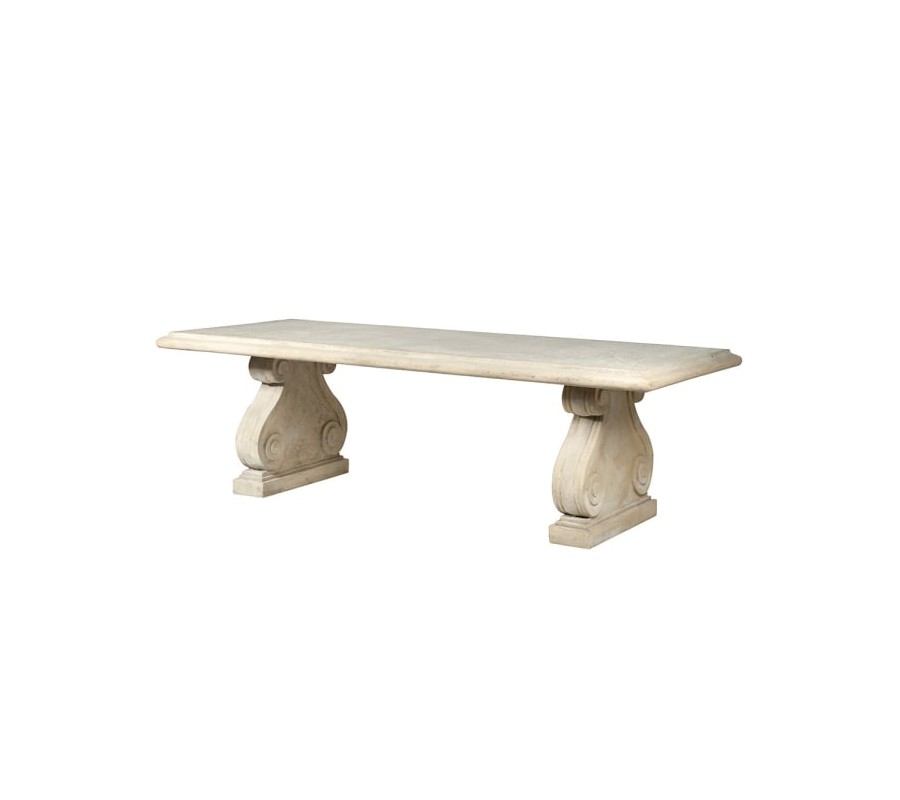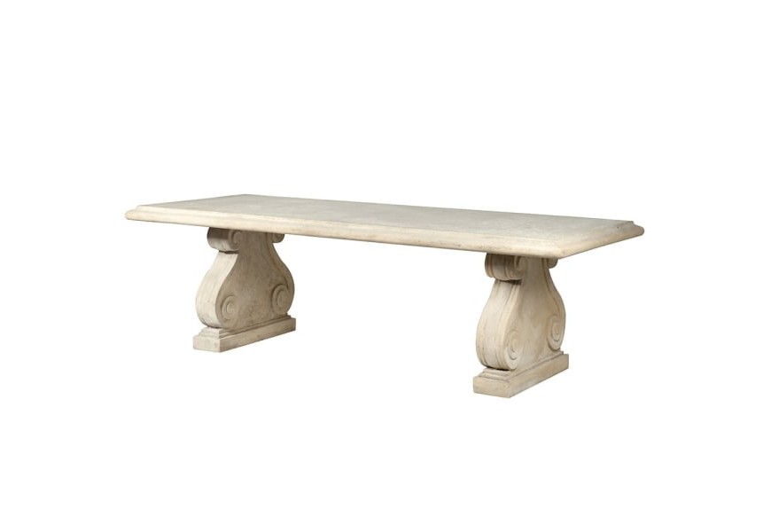 Luxusný jedálenský stôl z našej kolekcie vintage nábytku Antic Rome je skvelým doplnkom vašej záhradky, terasy či dvora. Dizajn tohto kúsku je inšpirovaný antickým umením a kultúrou a nesie v sebe znaky typické pre toto obdobie. Stôl je vyrobený z materiálu polyresin, ktorý dopĺňa vkusná mramorová povrchová úprava v pieskovej farbe. Jednoduchú obdĺžnikovú povrchovú dosku dopĺňajú plné bočné nohy s ornamentálnym zdobením. Stôl Antic Rome vaše záhradné priestory premení na antickú oázu a dodá im štýlový estetický nádych. Pre dokonalý vzhľad odporúčame k stolu doladiť lavicu z kolekcie Antic Rome, prípadne iné kúsky z tejto kolekcie. Rovnako na doplnenie atmosféry odporúčame aj ďalšie záhradné doplnky ladené vo vintage či antikcom štýle a ozdobné kríky či kvety. Stôl je vhodný pre pohodlné stolovanie 8-10 ľudí.