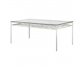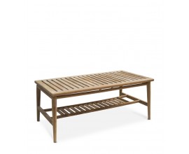 Luxusný záhradný dizajnový atypický obdĺžnikový drevený konferenčný stolík Koras s poličkou v hnedej farbe 160 cm