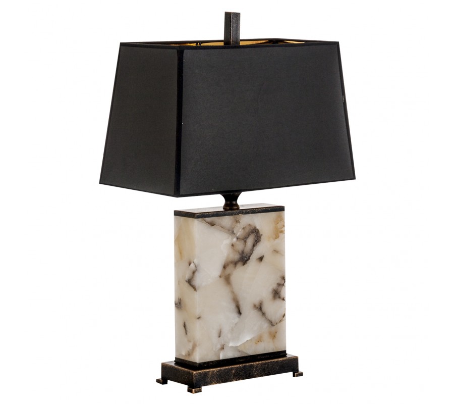 Elegantná stolná lampa na mramorovej základni s tmavým tienidlom vnesie do miestnosti kúsok luxusu.