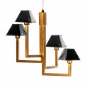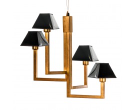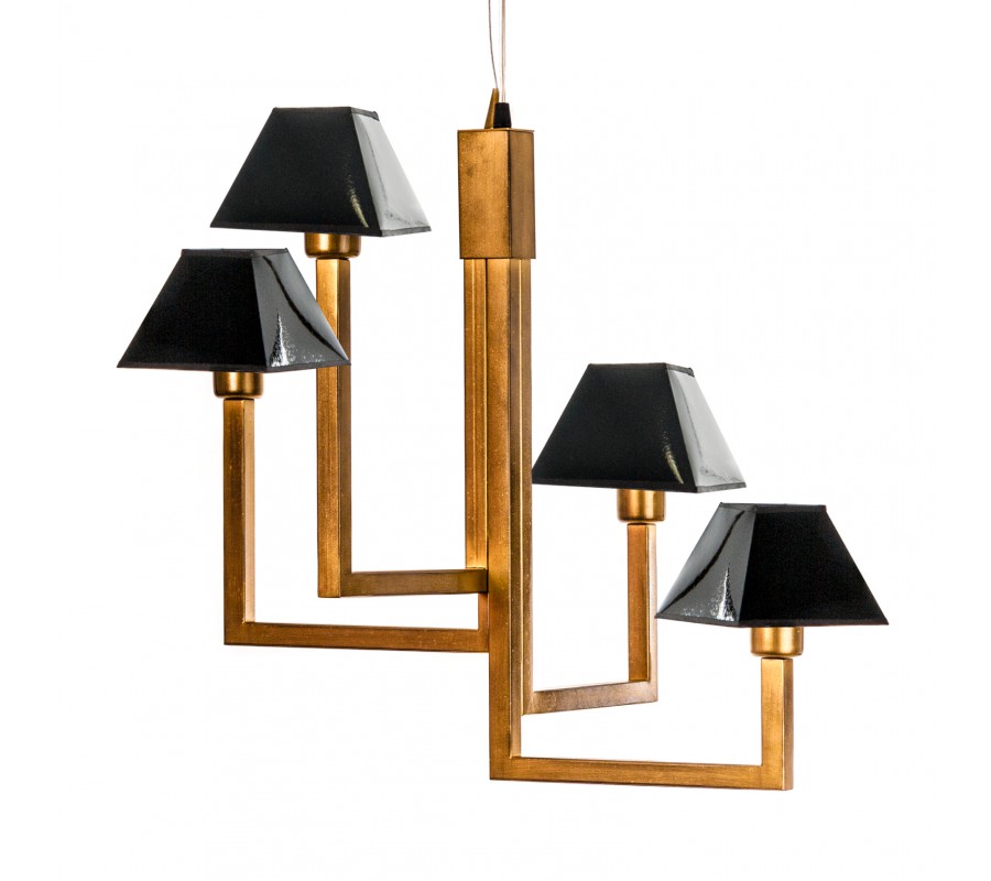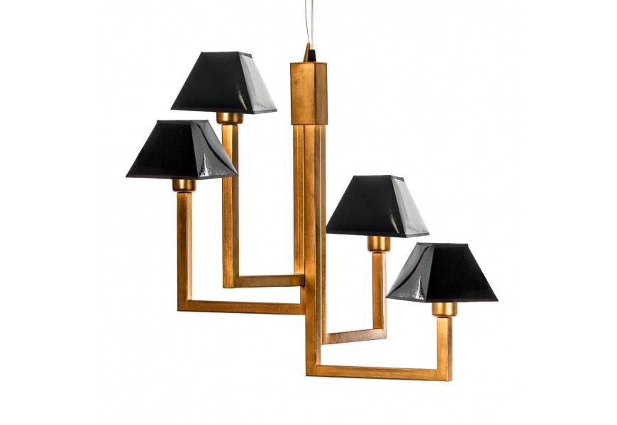 Tento luster je vyrobený z kovu v zlatom prevedení a jeho tienidla čiernej farby sú z lakovanej kože .