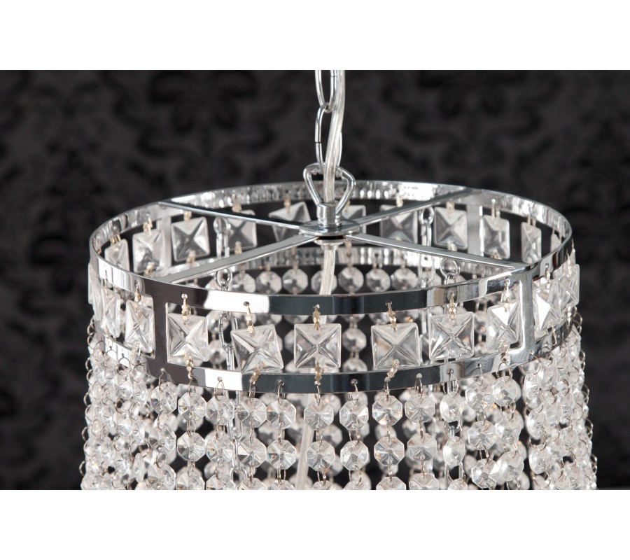 Luxusný elegantná závesný luster Glory s maximálnym výkonom 25W alebo E14 je krásnym osvetlením do moderne, prepychových interiérov. Luster Glory je vysoký 100cm o priemere 25cm-65cm. Kombinácia kovu s plastom robí zo závesného svietidla jedinečný kúsok, ktorý zaujme každého na prvý pohľad