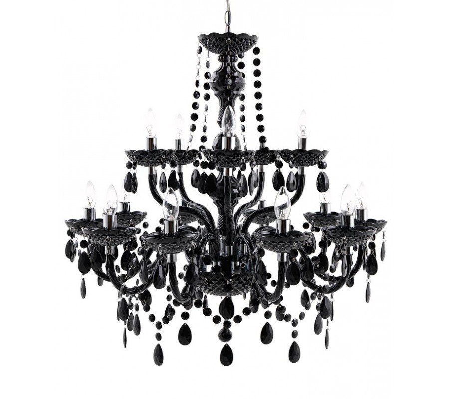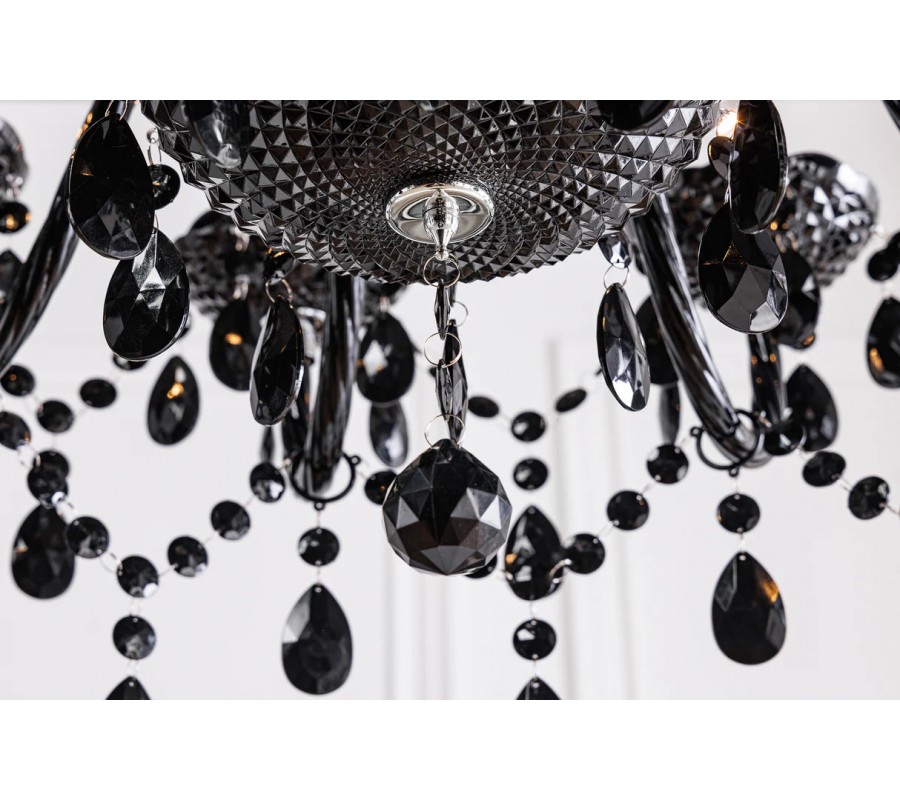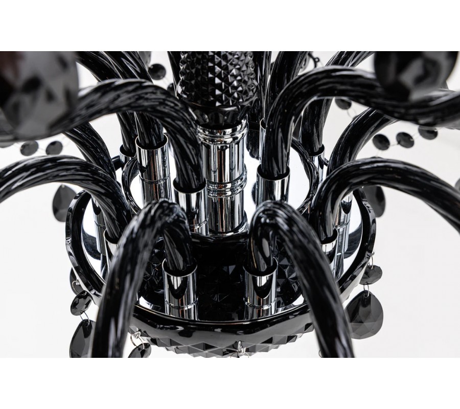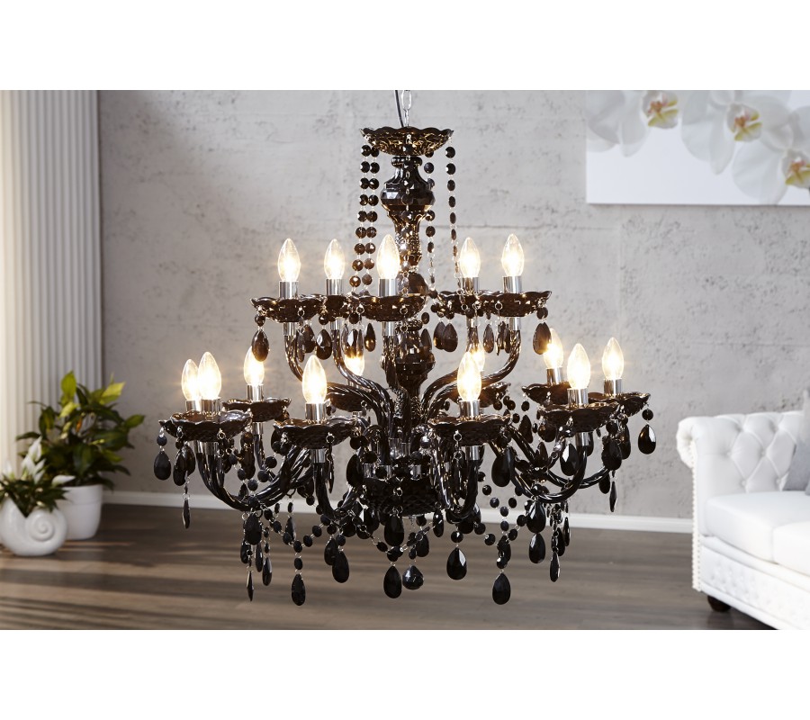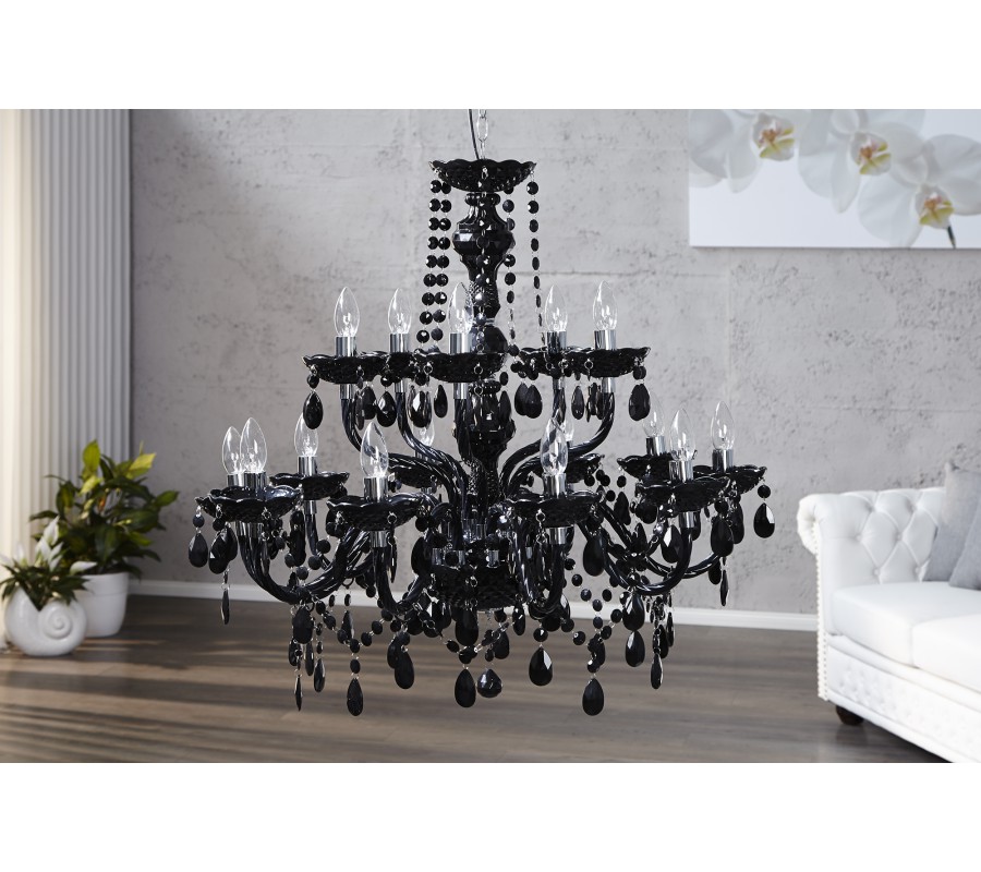 Dizajnový zámocký luster Karat v čiernej lesklej farbe s pätnástimi ramenami s dekoratívnymi kryštálmi 80 cm