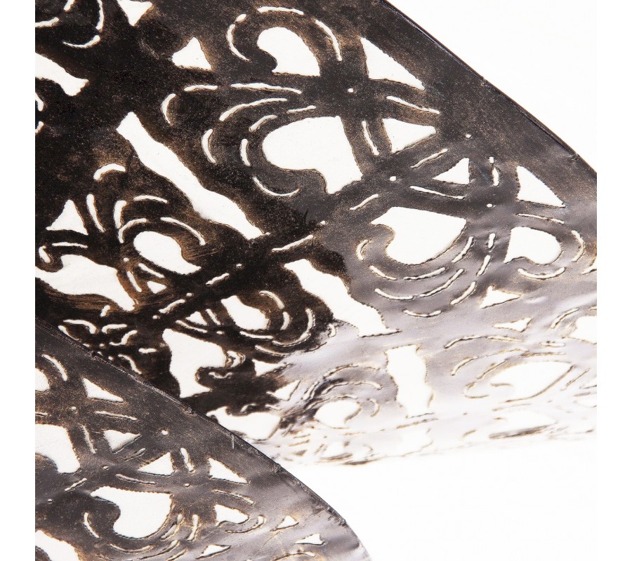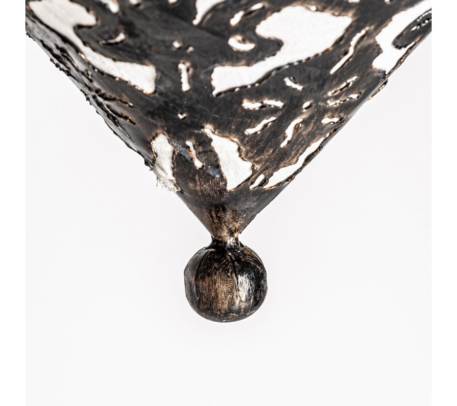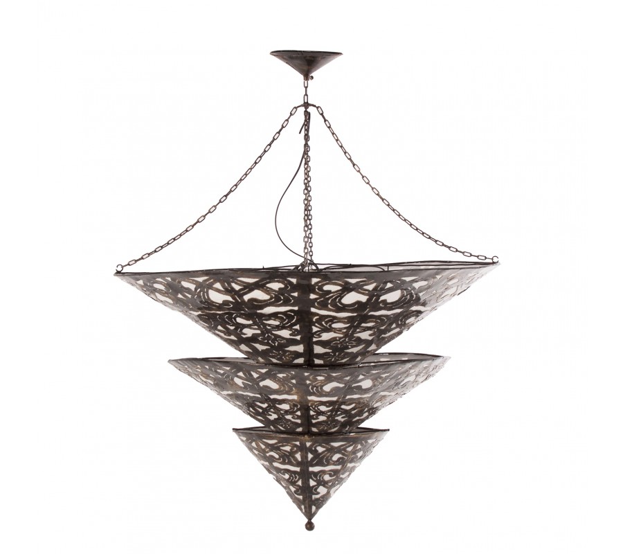 Luster Triangle predstavuje výnimočné dizajnové osvetlenie v orientálnom a vintage štýle, ktoré okamžite zaujme svojím monumentálnym tvarom a detailne prepracovaným vzorom. Je vyrobený z kovu v bronzovej farbe s čiernou patinou, ktorá mu dodáva dojem starožitnosti a remeselného charakteru.