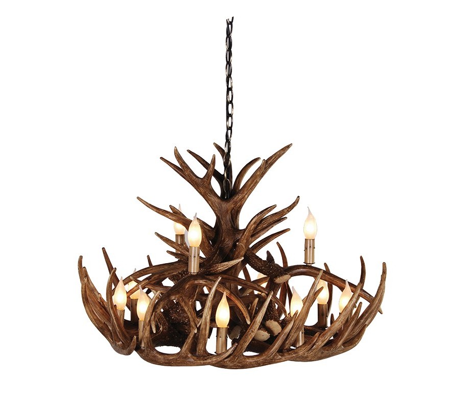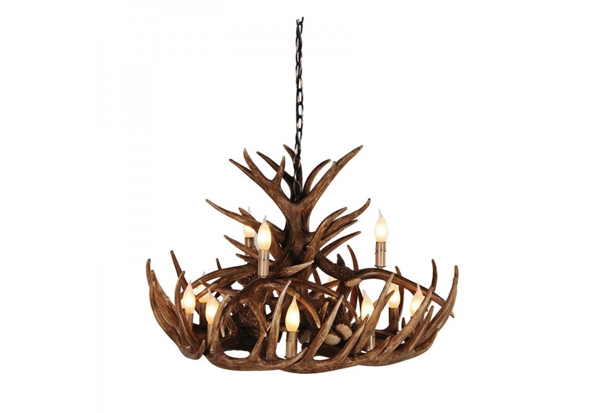 Luxusný luster Deer prinesie do vášho domova mágiu divokých lesov. Jedinečný dizajn jelenieho parožia vyrobeného zo živice vytvorí v miestnosti čarovnú tieňohru, no zároveň vám vďaka žiarovkám umiestneným na dvoch úrovniach poskytne dostatočné kvalitné osvetlenie. Má tvar kruhu, na ktorého obvode sa v spodnej časti nachádza 8 objímok na žiarovky a nad nimi ešte ďalšie štyri. Celkovo je teda potrebných 12 žiaroviek typu E14 s maximálnym príkonom 25 wattov, ktoré nie sú súčasťou balenia. Luster je zavesený na železnej reťazi, cez ktorú vedie aj napájací kábel. Je vhodný do miestností zariadených masívnym dreveným nábytkom, s ktorým sa prepojím prostredníctvom prírodnej tematiky. Ak ju chcete ešte viac zvýrazniť, môžete tiež pridať živé zelené rastliny a machové dekorácie. Skvele doplní aj obývačku či jedáleň zariadenú vo vidieckom štýle, kde nebude len funkčným svietidlom, ale tiež impozantným dekoračným prvkom. Motív parožia luster priam predurčuje do luxusných chát a zrubov, kde ho zasa môžete skombinovať s doplnkami s prírodnou či umelou kožušinou.