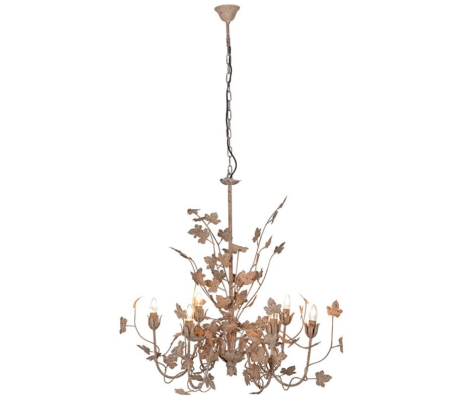 Šesťramenný listový kovový luster Venis v svetlo béžovej farbe vo vintage štýle 98 cm