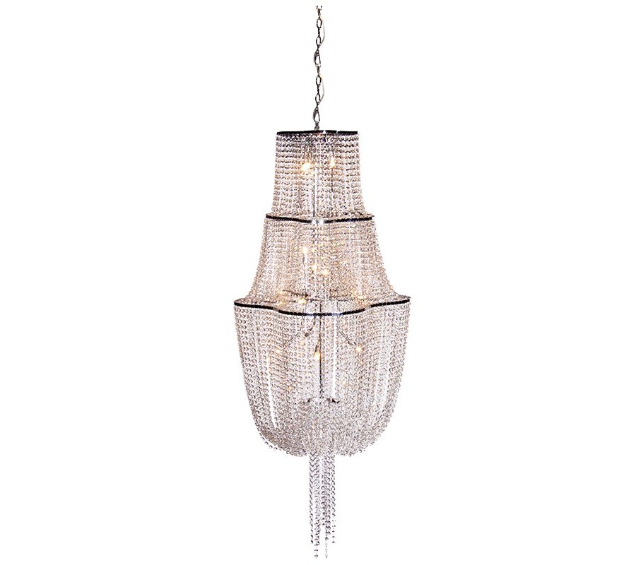 Exkluzívny luster Matteo je svietidlom, ktoré upúta aj tých náročnejších. Zaujať môže vďaka svojmu elegantnému prevedeniu, kvalitným materiálom a luxusnému efektu. Bohaté zdobenie v podobe reťazí z čínskeho krištáľu je upevnené na troch kovových obručiach tvarujúcich luster do príjemných zaoblených tvarov. Na kovovú konštrukciu uprostred sa napája 15 žiaroviek, ktoré poskytnú vašim priestorom dostatok osvetlenia, či už luster umiestnite v obývačke, jedální alebo väčších priestorov hotelových vstupných hál či reštaurácií. Luxusný vzhľad lustra Matteo zapadne predovšetkým do exkluzívnych zámocky ladených interiérov v kombinácii s nábytkom z kovu a skla a zamatovými či koženými sedačkami a kreslami. Do lampy sú vhodné žiarovky typu G9 max. 25W.
