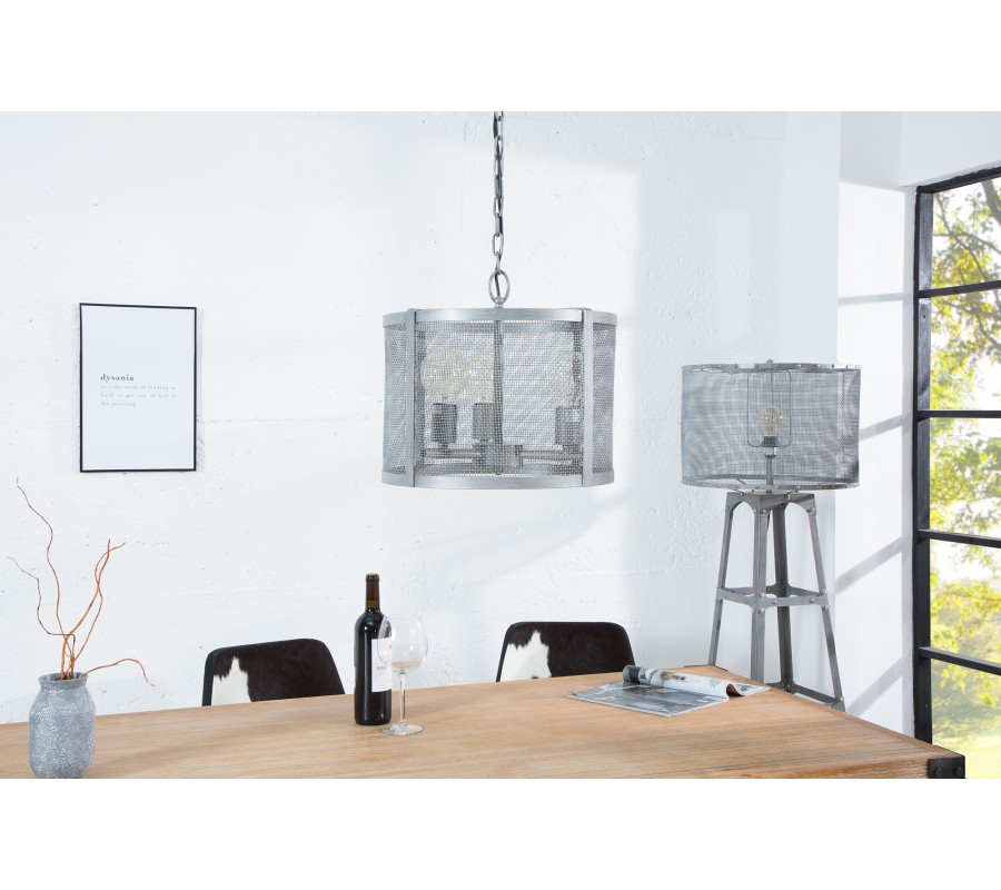 Dizajnová závesná lampa Loft v šedo-striebornom farebnom prevedení je pre vás ideálnou voľbou, pokiaľ sa vo svojej domácnosti radi obklopujete unikátnymi, dizajnovými kúskami. Masívna závesná reťaz spolu s okrúhlym, pletivovým tienidlom lampe dodávajú výrazný industriálny nádych, ktorý dodá šmrnc každému moderne zariadenému priestoru. Tento jedinečný, dizajnový kúsok tak vďaka svojmu vzhľadu zaručene upúta pohľad každej návštevy. Lampa je prispôsobená žiarovkám E27 s maximálnym výkonom 60W energetickej triedy A++ až E. Dodávaná je bez žieroviek.