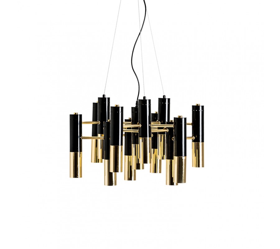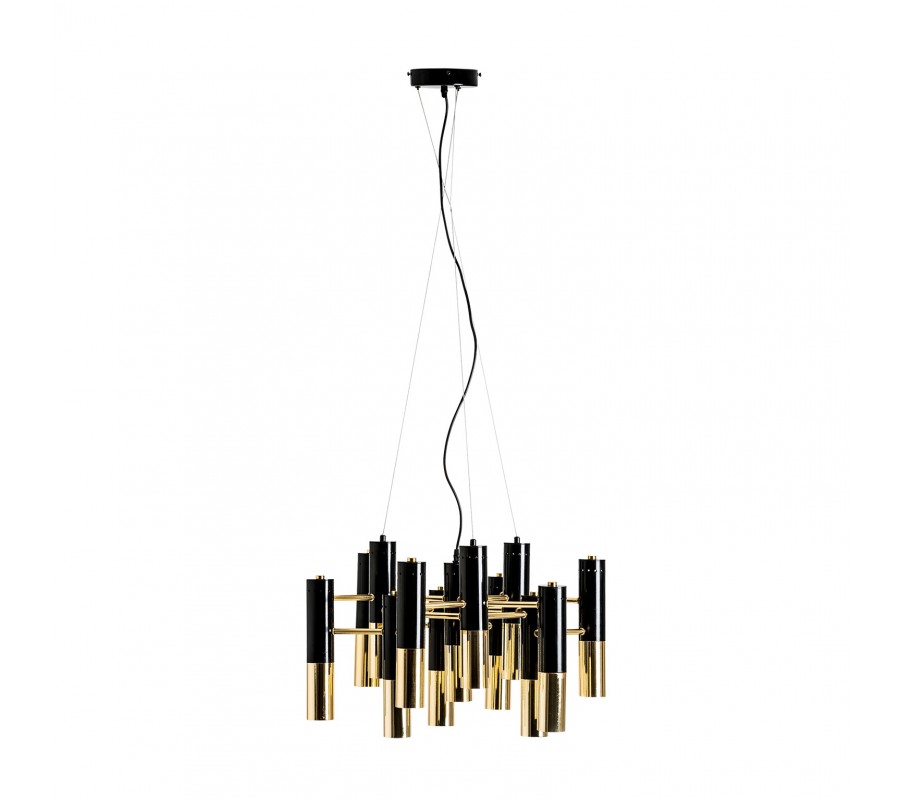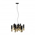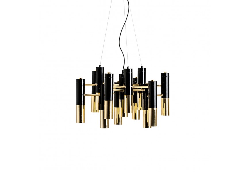 Art-deco luxusný zlato-čierny luster Lena z kovových valcov 60cm