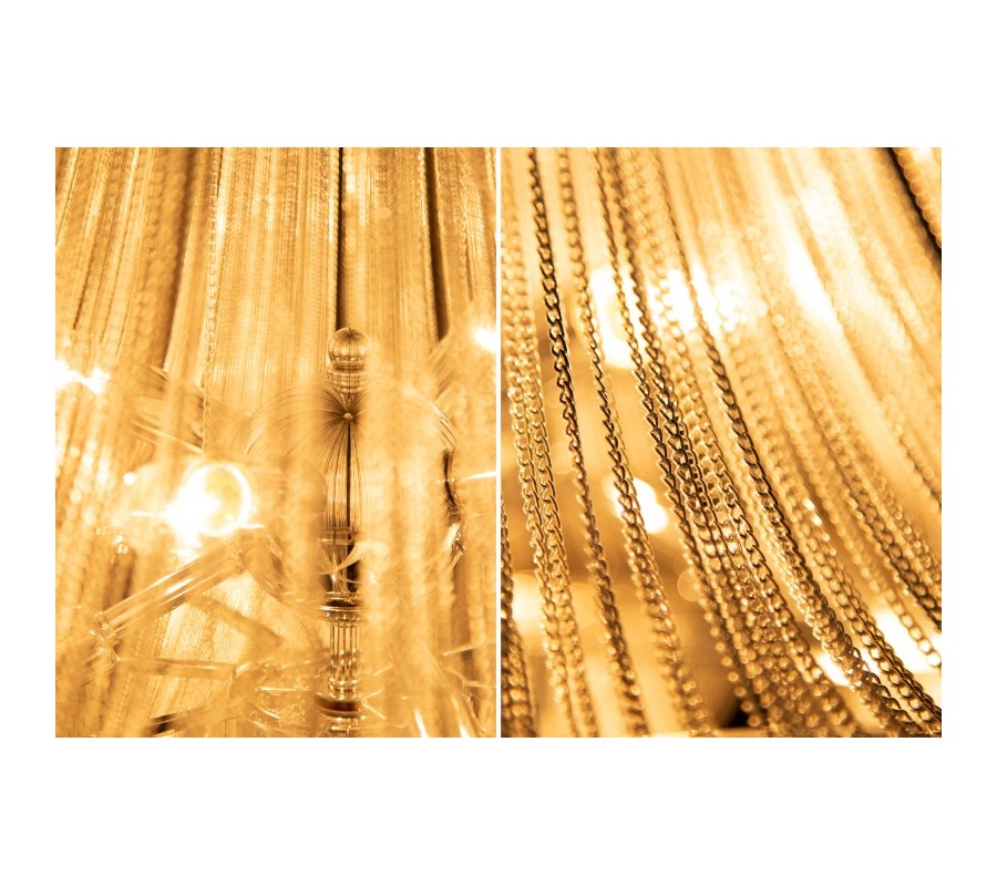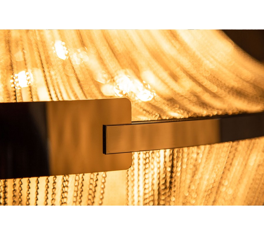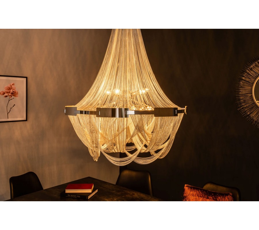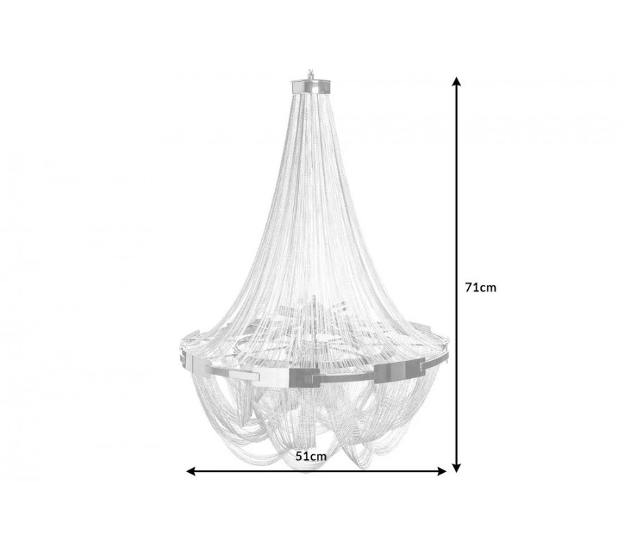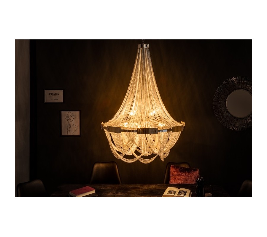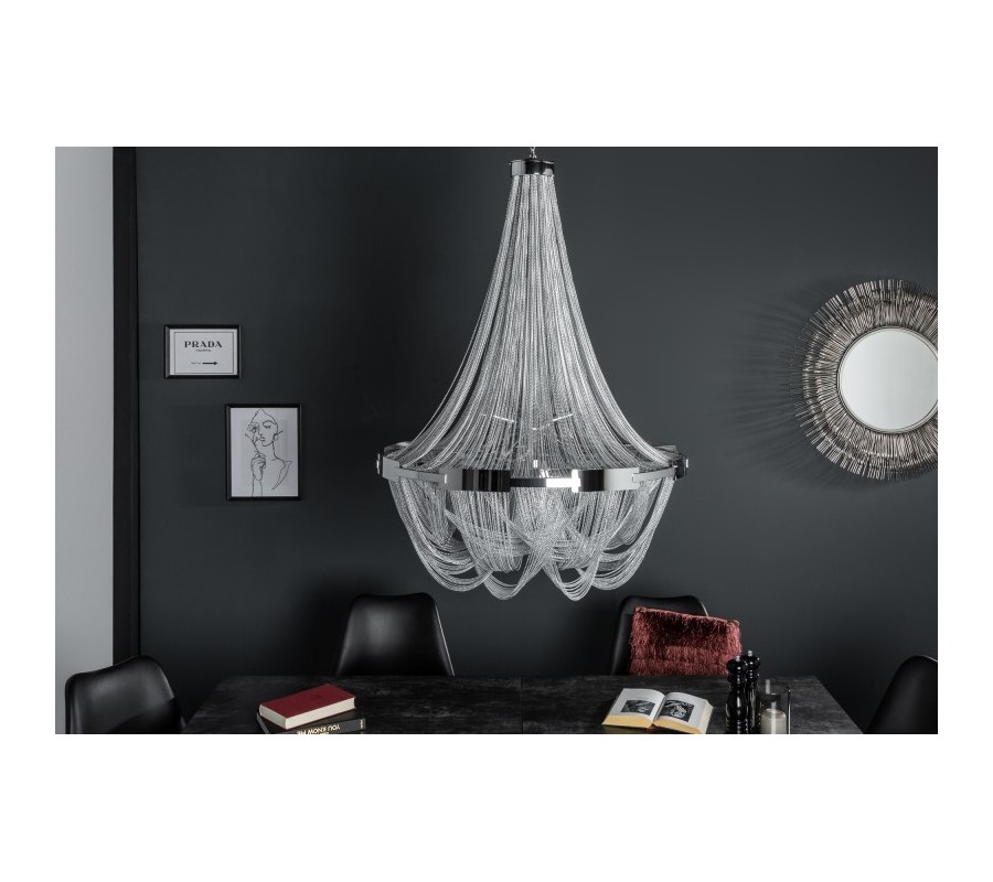 Luster je vyniká hlavne svojím retiazkovým prevedením, ktorým dotvára jedinečnú siluetu. Dizajnovo je dopĺňaný štýlovou obrubou po jeho bokoch ktorá mu dáva kruhový tvar. Strieborné retiazky sa pri použití žiaroviek s teplým svetlom javia ako zlaté či medené. Luster vďaka použitiu chrómových prvkov nesie znaky art-deco luxusného bývania. Hodí sa najmä ako osvetlenie do obývacej miestnosti či do iných reprezentačných hál s vyšším stropom.