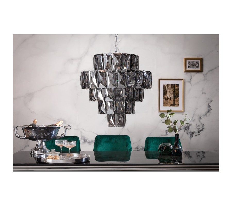 Luster Leontin je exkluzívnym kúskom, ktorý zaujme milovníkov elegancie a luxusu. Skladá sa zo 75 sklenených kryštálových útvarov, ktoré sú upevnené na kovovej konštrukcii. Vzniká tak jedinečne pôsobiaci dizajn, ktorý má nádych art-deco štýlu. Kryštálové útvary vytvárajú nádherný svetelný efekt a vašu miestnosť krásne rozžiaria. Luster Leontin odporúčame umiestniť najmä do art-deco luxusných interiérov, a krásne vynikne napríklad v kombinácii so sklenenými či zrkadlovým nábytkom, čalúnenými sedačkami a luxusnými kovovými dekoráciami. Vhodné sú žiarovky E14 max 40W.