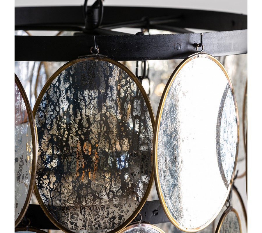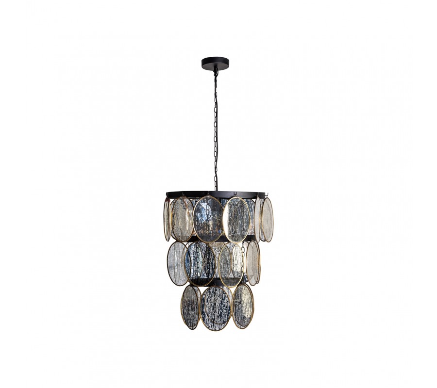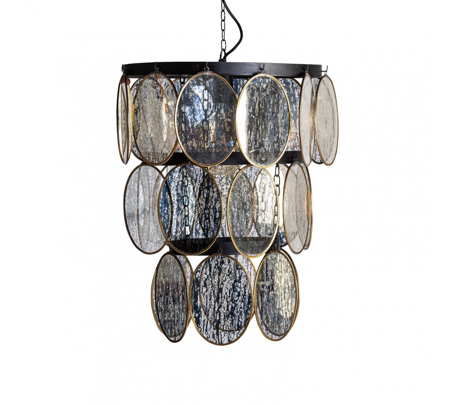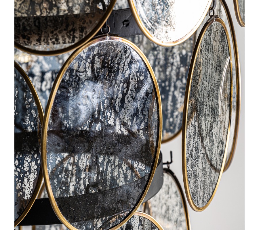 Exkluzívny luster Edgar vás už na prvý pohľad očarí svojím unikátnym dizajnom. Konštrukcia tohto jedinečného svietidla pozostáva z troch kovových kruhov čiernej farby usporiadaných od najväčšieho po najmenší, vďaka čomu vzniká tvar pripomínajúci obrátený kužel. Po obvode kovových kruhov sa nachádzajú dizajnové prvky v podobe oválnych sklíčok s mosadzným rámom, ktoré zdobí čierny dizajn vytvárajúci vzhľad atramentových škvŕn. Celý luster sa nesie v art-deco štýle a do vášho interiéru vnesie nádych noblesy. Svoje miesto si nájde v jedálni nad jedálenským stolom či v obývačke, ale aj vo vstupných halách hotelov či v iných reprezentatívnych priestoroch zariadených v modernom štýle.