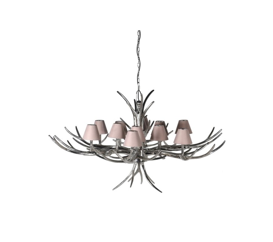 Elegantný luster Silver Stag vkusne doplní priestory luxusných víl, hotelov, reštaurácií či honosný interiér vášho domova. Konštrukcia tohto svietidla vyrobená z kovu svojím tvarom pripomína jelenie parožie. Nesie sa v dizajnovej chrómovej striebornej farbe, vďaka čomu vhodne zapadne do vintage či art-deco, ale i modernejšie ladených priestorov. Kovovú konštrukciu dopĺňa dvanásť žiaroviek s jednoduchými tienidlami, ktoré poskytnú výborné svetelné podmienky pre umiestnenie aj v priestrannejších miestnostiach ako napríklad v jedálni, obývačke, zasadacej či konferenčnej miestnosti alebo elegantnej vstupnej hale. Luster Silver Stag sa vo vašom interiéri stane dominantným prvkom, ktorý upúta pozornosť už na prvý pohľad!
