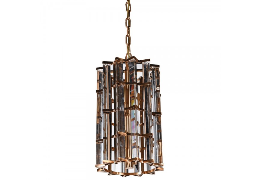 Art-deco ozubený valcovitý sklenený luster Corlyss s etážami a s detailami medenej farby 40cm