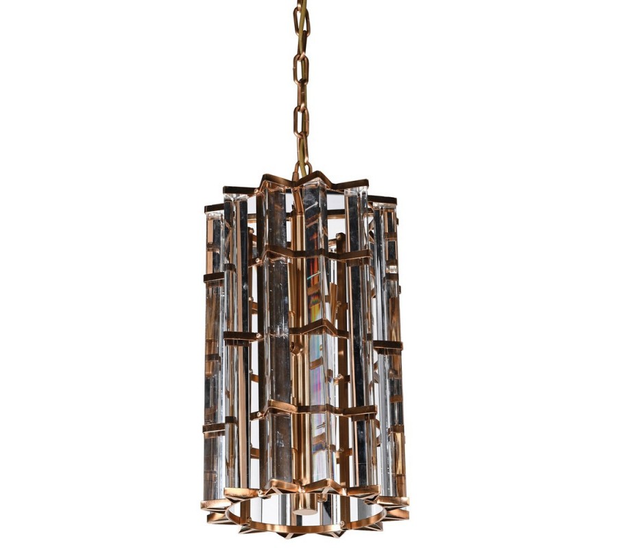 Luxusný ozubený luster Corlyss je tvorený predovšetkým mnohými tyčami z priehľadného skla. Jednotlivé tyče sú tvorené stĺpikmi s trojuholníkovou podstavou a nádherne pri zažnutí lustra lámu jeho svetlo, ktoré sa bude očarujúco šíriť priestorom najmä pri kombinácii so zrkadlom v medenom ráme, ktoré svetlo prenesie do ďalších kútov miestnosti. Vďaka dlhej medenej reťazi pôsobí takto luster spolu s konštrukciou ucelene a jednotne. Milovníkov nenúteného glamour štýlu poteší najmä precízne tvarovanie podstavy samotného lustru, ktorá je zdobená špicatými výbežkami, vďaka ktorým pri pohľade zospodu pripomína luster Corlyss kvet astry. V rámci luxusných reprezentatívnych priestorov firiem, hál či jedální odporúčame luster Corlyss kombinovať najmä s art deco nábytkom a spomínanými zrkadlami v hrubých medených rámoch. K svietidlu odporúčame štyri žiarovky s maximálnym výkonom 40 W E14, ktoré nie sú súčasťou balenia.