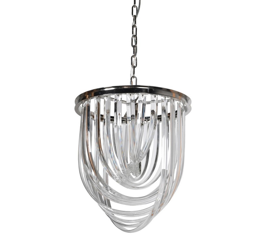 Art deco sklenený luster Mysaria so striebornou okružou a sklenenými oblúkmi na reťazi 40cm