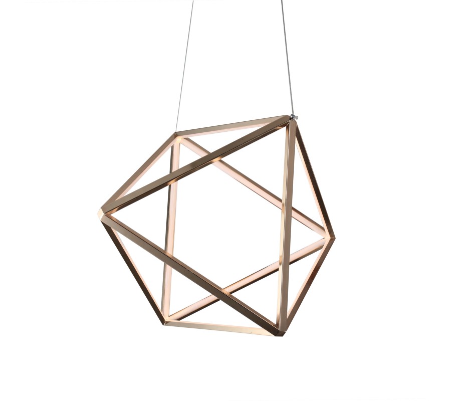 Moderná závesná lampa z kolekcie škandinávskeho moderného nábytku Vidar vás zaujme svojím atypickým tvarom s trojuholníkovým vzorom. Dizajnová závesná lampa Vidar prinesie moderný nadčasový vzhľad do vašej obývačky, vďaka svojej kovovej tvarovanej konštrukcií v bronzovo-zlatej farbe, disponujúcej svietlami v rohoch trojuholníkov. Modernú závesnú lampu Vidar odporúčame kombinovať s nábytkom s lesklými kovovými prvkami v čiernej, bronzovej alebo zlatej farbe.