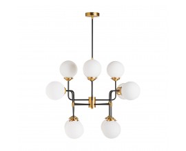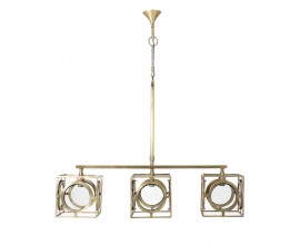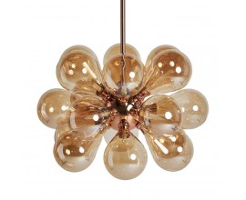 Vintage závesná lampa Silantro s medenou kovovou konštrukciou a sklenenými tienidlami z tmavého skla 56cm