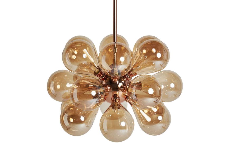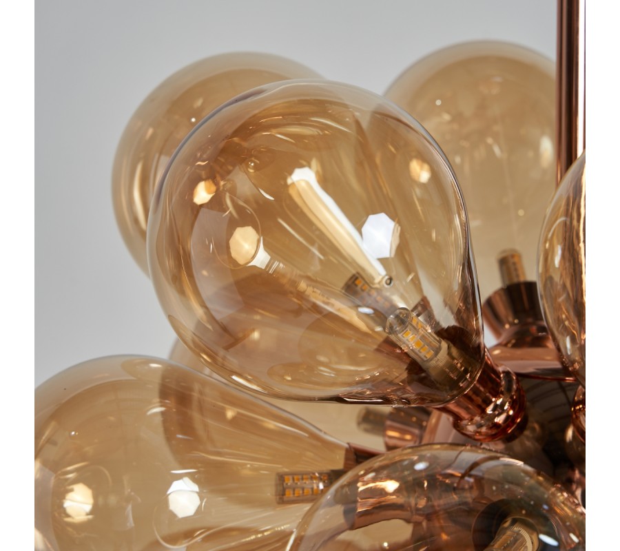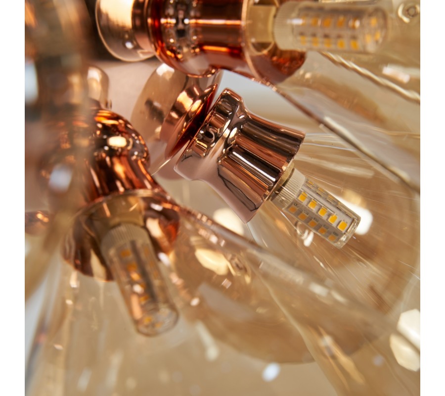 Závesná lampa Silantro je unikátnym svietidlom vhodným na doplnenie vintage ladených obývačiek, jedální či pracovní. Lampa pozostáva z kovovej konštrukcie v elegantnej medenej farbe, ktorú dopĺňajú kruhové tienidlá z tmavého dymového skla v podobom odtieni. Vzniká tak jedinečný dizajn s jemným nádychom vintage štýlu. Závesná lampa Silantro vhodne doplní priestory zariadené masívnym alebo kovovým nábytkom v prírodných zemitých farbách, ale krok vedľa nespravíte ani kombináciou s výraznými kontrastnými farbami. Váš interiér príjemne esteticky doplní a vďaka veľkému počtu žiaroviek sa postará o výborné osvetlenie. Balenie zahŕňa 19 kusov žiaroviek G9 LED 3W.