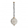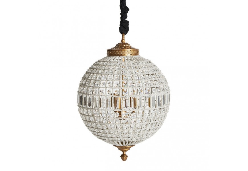 Art deco krištáľový okrúhly závesný luster Laton s mosadzným zdobením 74cm
