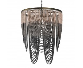 Luxusný okrúhly vintage luster Counside s ozdobnými korálkami a kovom v starozlatej farbe 125cm